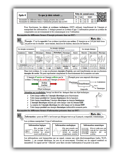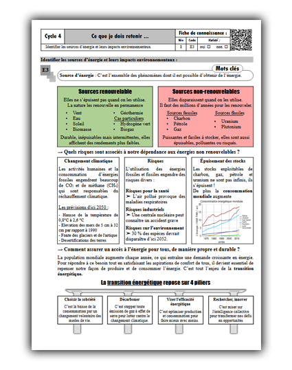 Les fiches de connaissances de Cycle 4 :